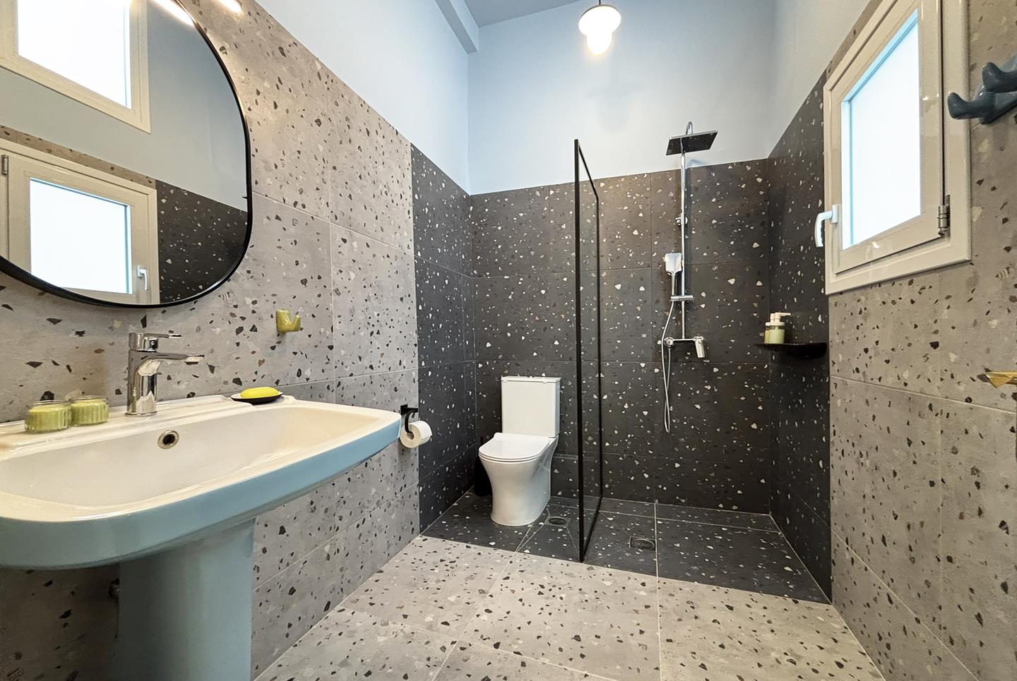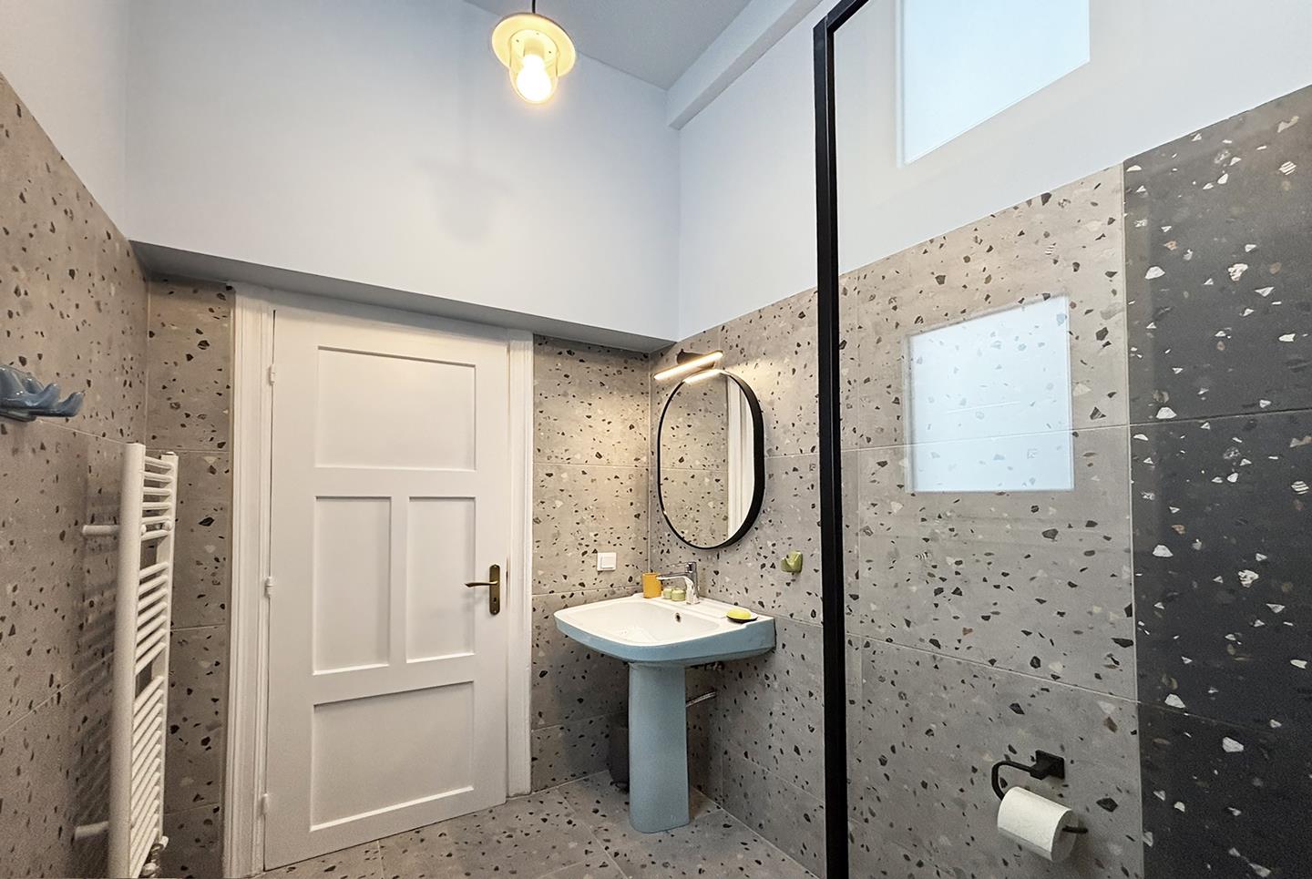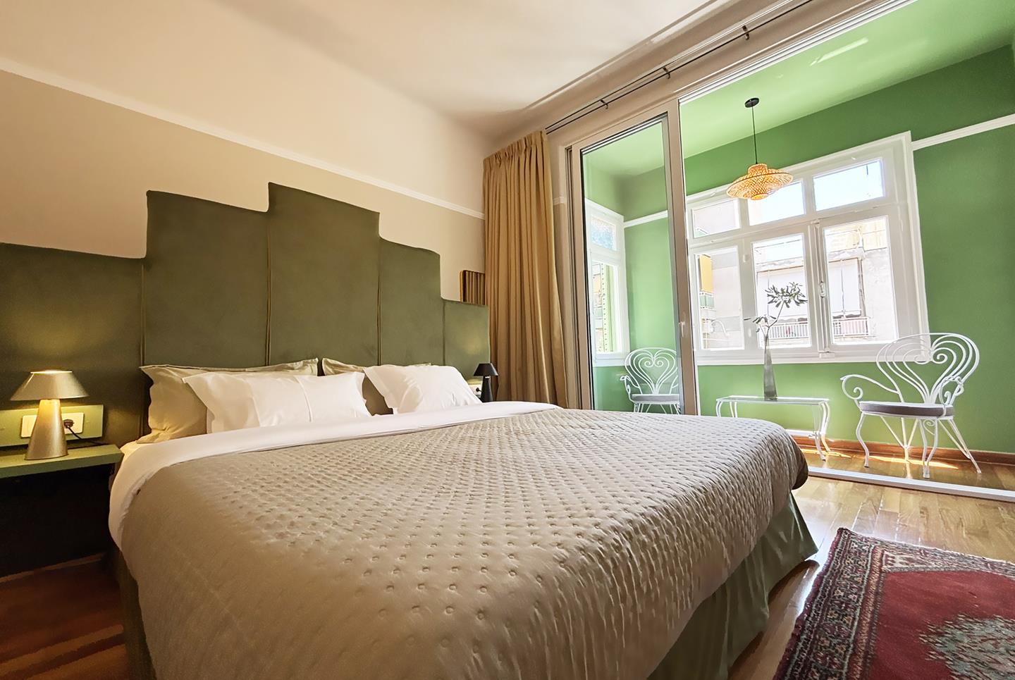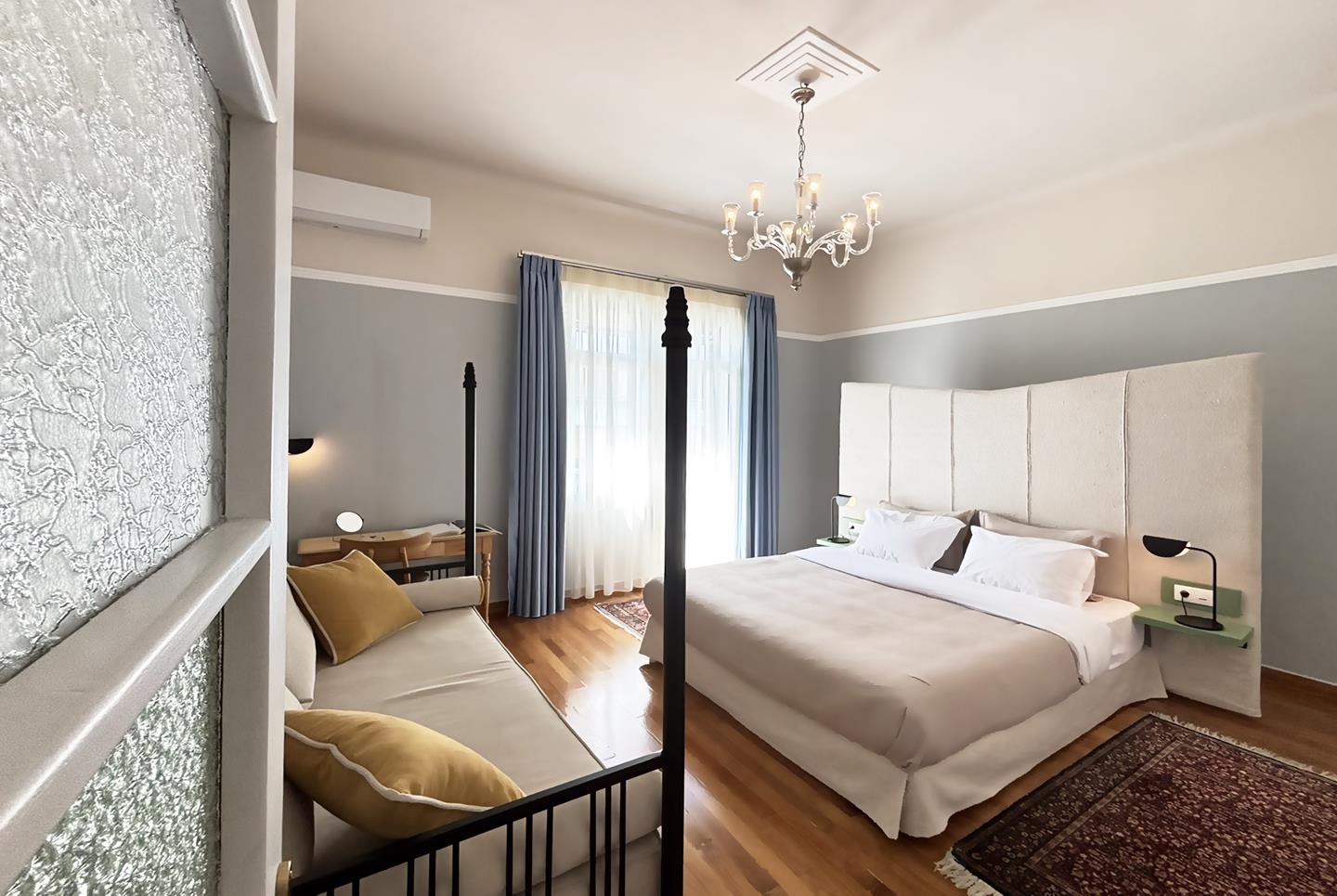 A late 19th century landmarked building fully restored in 2025. Its architectural style and design is influenced by the modernist architectural movement of Athens. Pangrati fine residence is listed as a preserved building with main characteristics: the high ceilings of 3.60 m, the plaster decoration, the preserved mosaics of the late 30s, and the signature parquet. All furniture is designed by Live in Athens.
